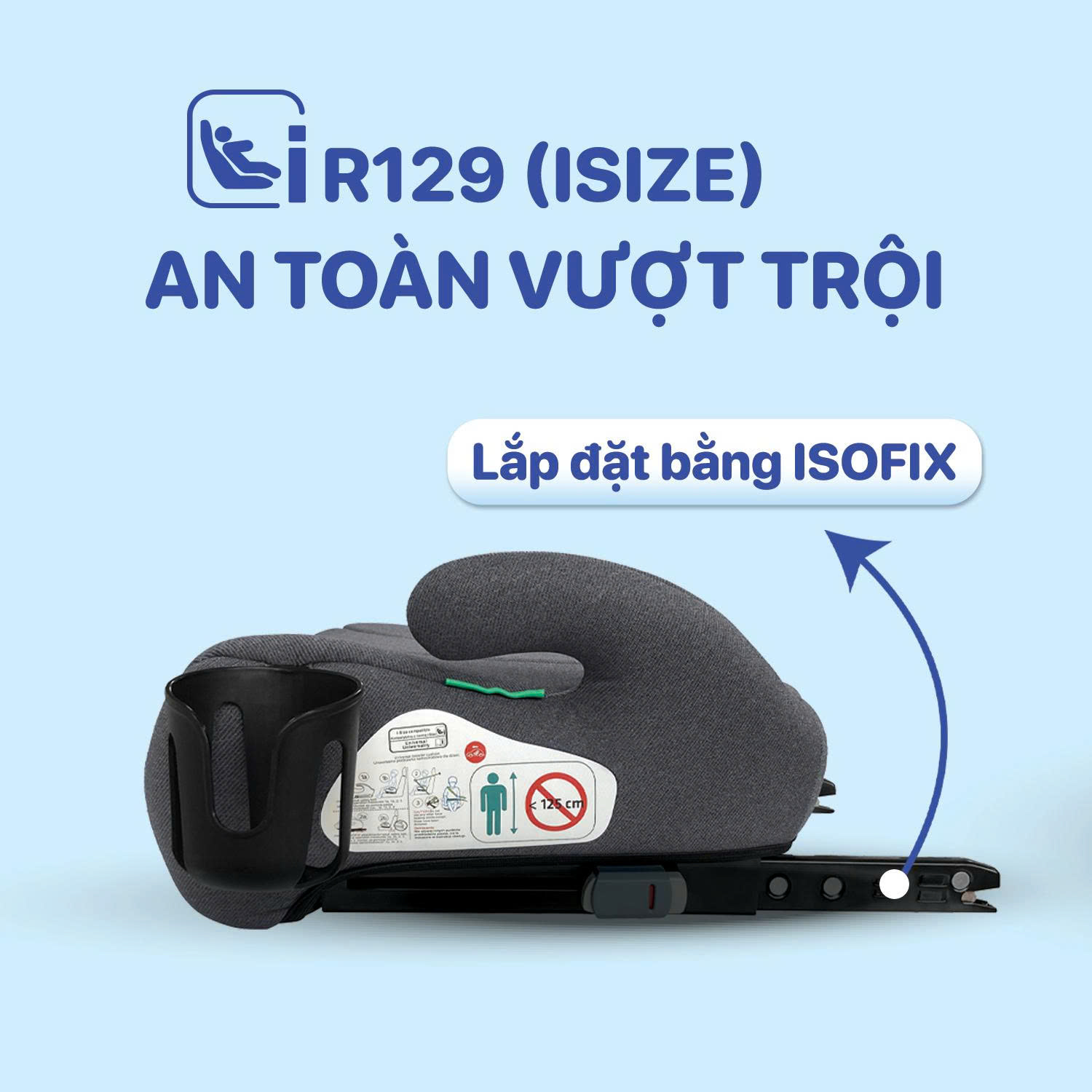 Ghế nâng, không tựa lưng chuẩn i-Size – nhỏ gọn – linh hoạt