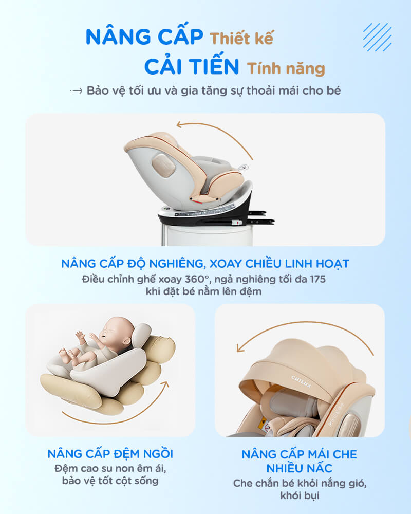 Ghế ngồi ô tô Chilux X86 (0 – 12 tuổi,xoay 360,isofix)