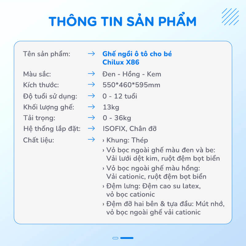 Thông số kỹ thuật ghế ngồi ô tô Chilux X86 tiêu chuẩn Isize