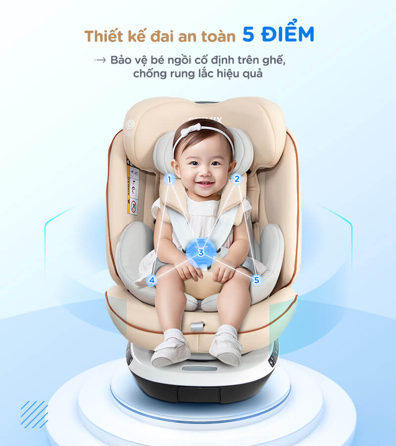 - Thiết kế đai an toàn 5 điểm chống rung lắc