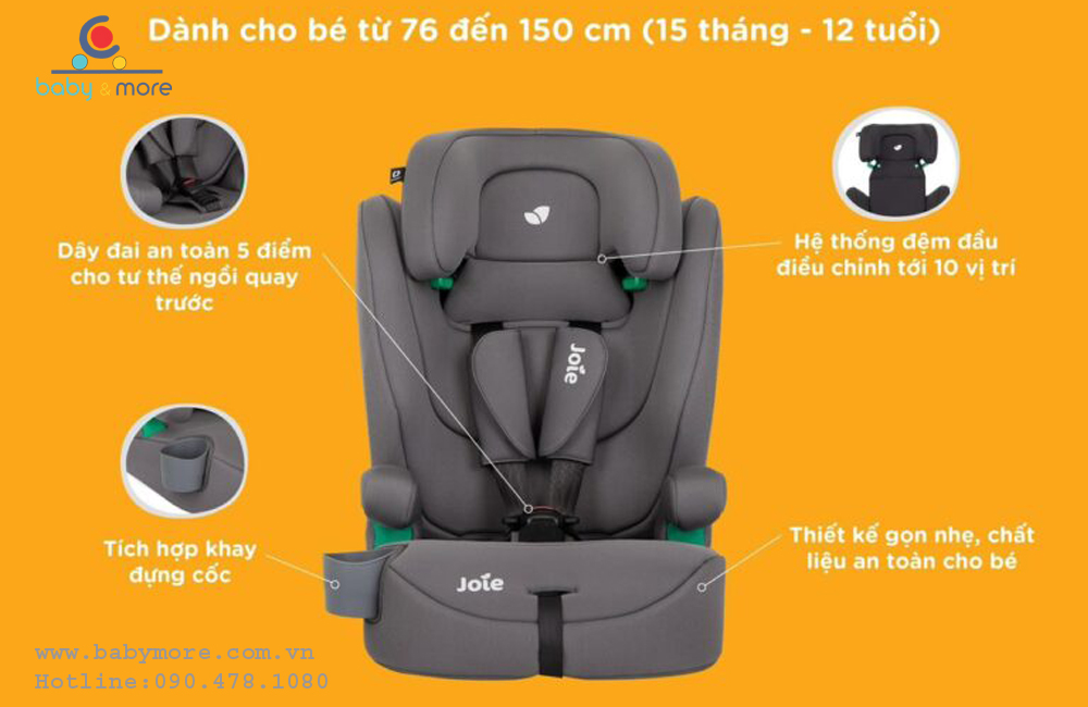 Ghế ngồi ô tô cho bé Joie Elevate từ 1-12 tuổi Chứng nhận chất lượng: ECE R44/04