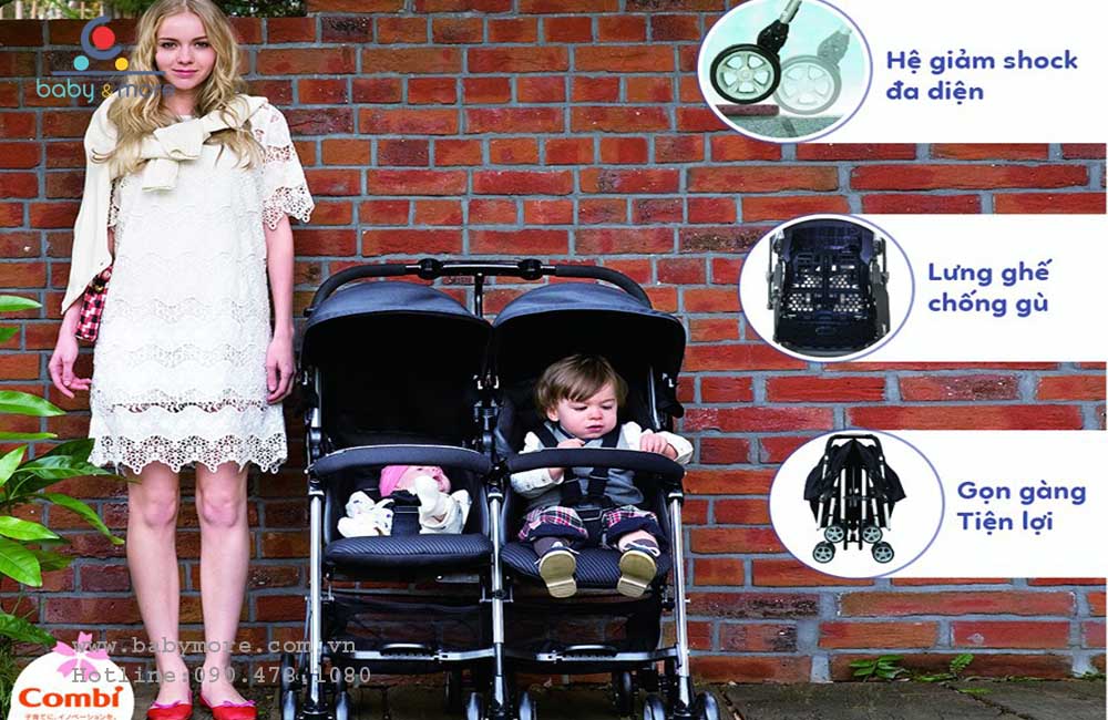 Xe đẩy đôi cho bé Combi Spazio Duo Với kiểu thiết kế xếp gọn gấp ba hiện đại làm cho ba mẹ rất thoải mái trong việc chăm sóc con cái thiết kế thông minh dễ dàng giúp mẹ đưa cả hai bé đi chơi
