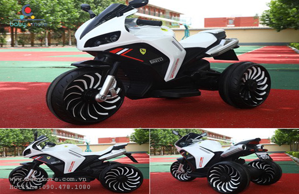 Xe máy điện trẻ em Ducati BLF911 được thiết kế kiểu dáng thể thao rất khoẻ khoắn, xe được trang bị 2 động cơ mạnh mẽ bất chấp mọi địa hình và có thể tải được bé tới 60kg đi lại dễ dàng, xe được bố trí như một chiếc xe máy thật với chế độ bé tự lái tiến lùi, xe trang bị đầy đủ đèn, còi nhạc rất vui nhộn đảm bảo bé sẽ rất thích thú với chiếc xe đặc biệt này
