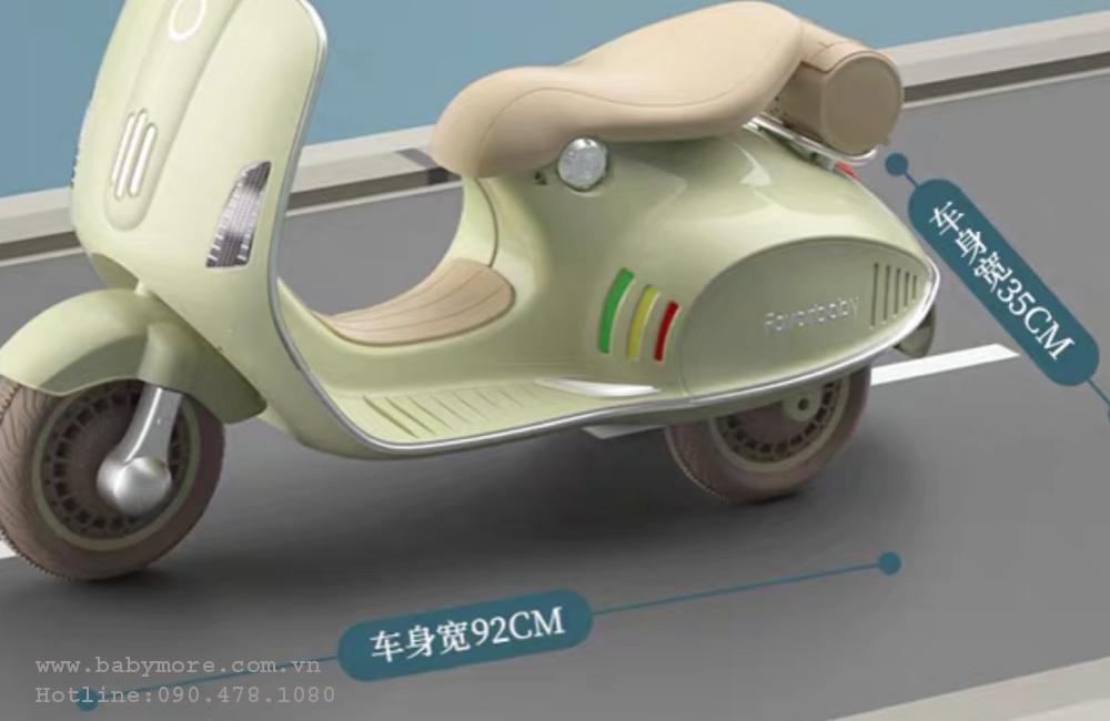 Xe máy điện trẻ em vespa XW02 được thiết kế theo nguyên mẫu xe Vespa thật, kiểu dáng trang nhã, xe phù hợp cho bé 1 tới 5 tuổi có chức năng đèn nhạc vui nhộn giúp bé vui chơi thỏa thích.